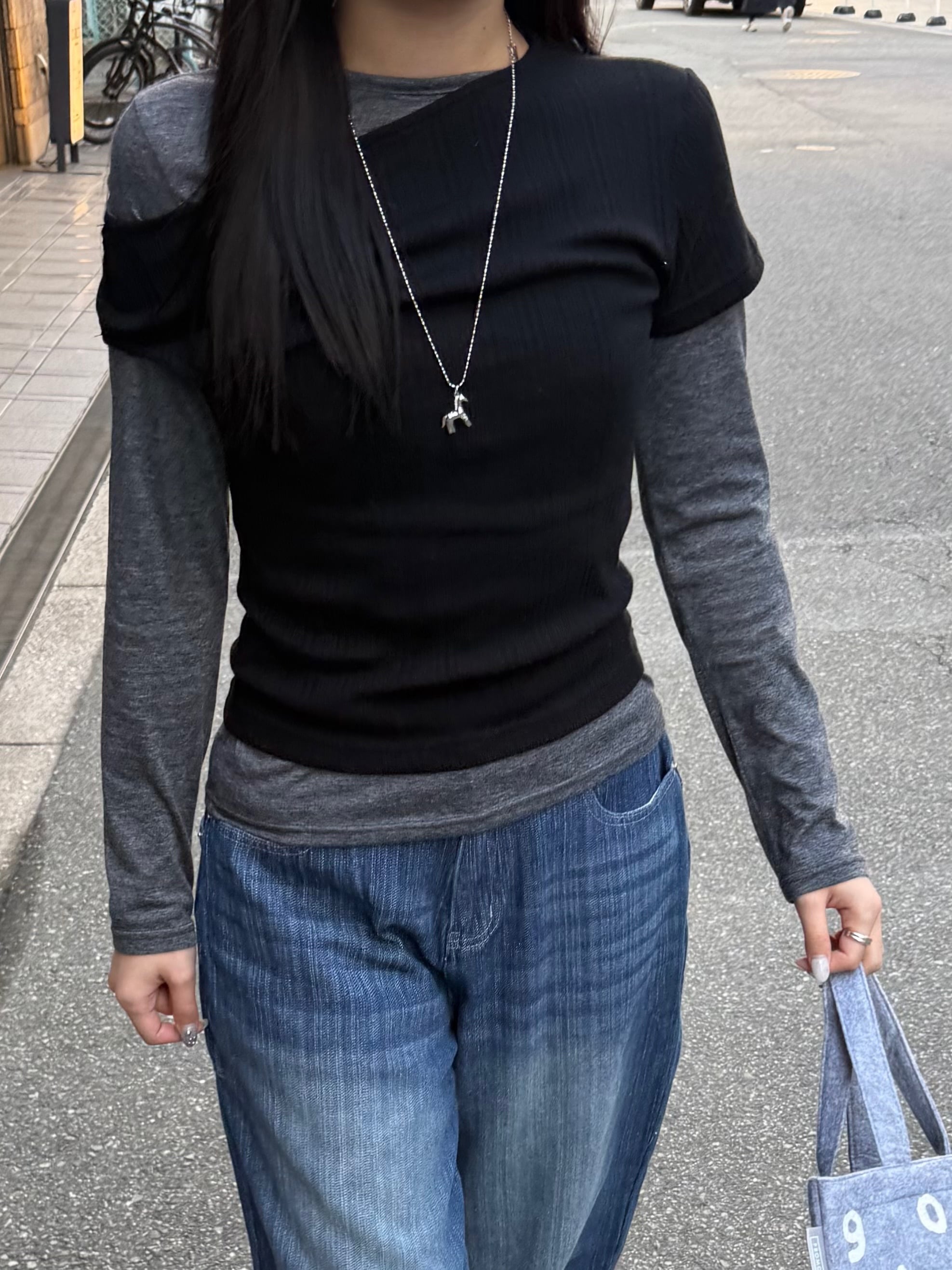 Tシャツとレイヤードすれば今季春の韓国トレンドに。