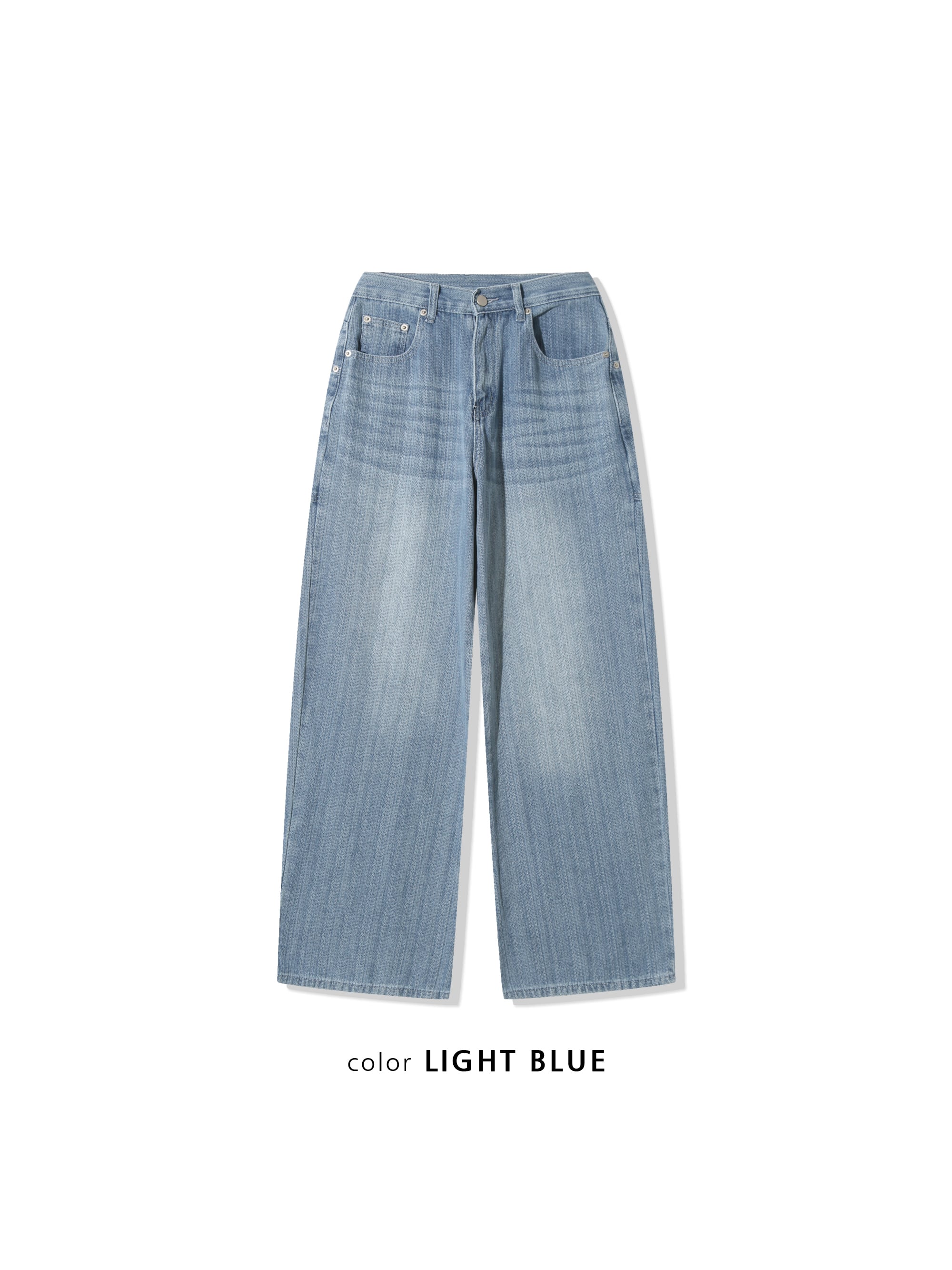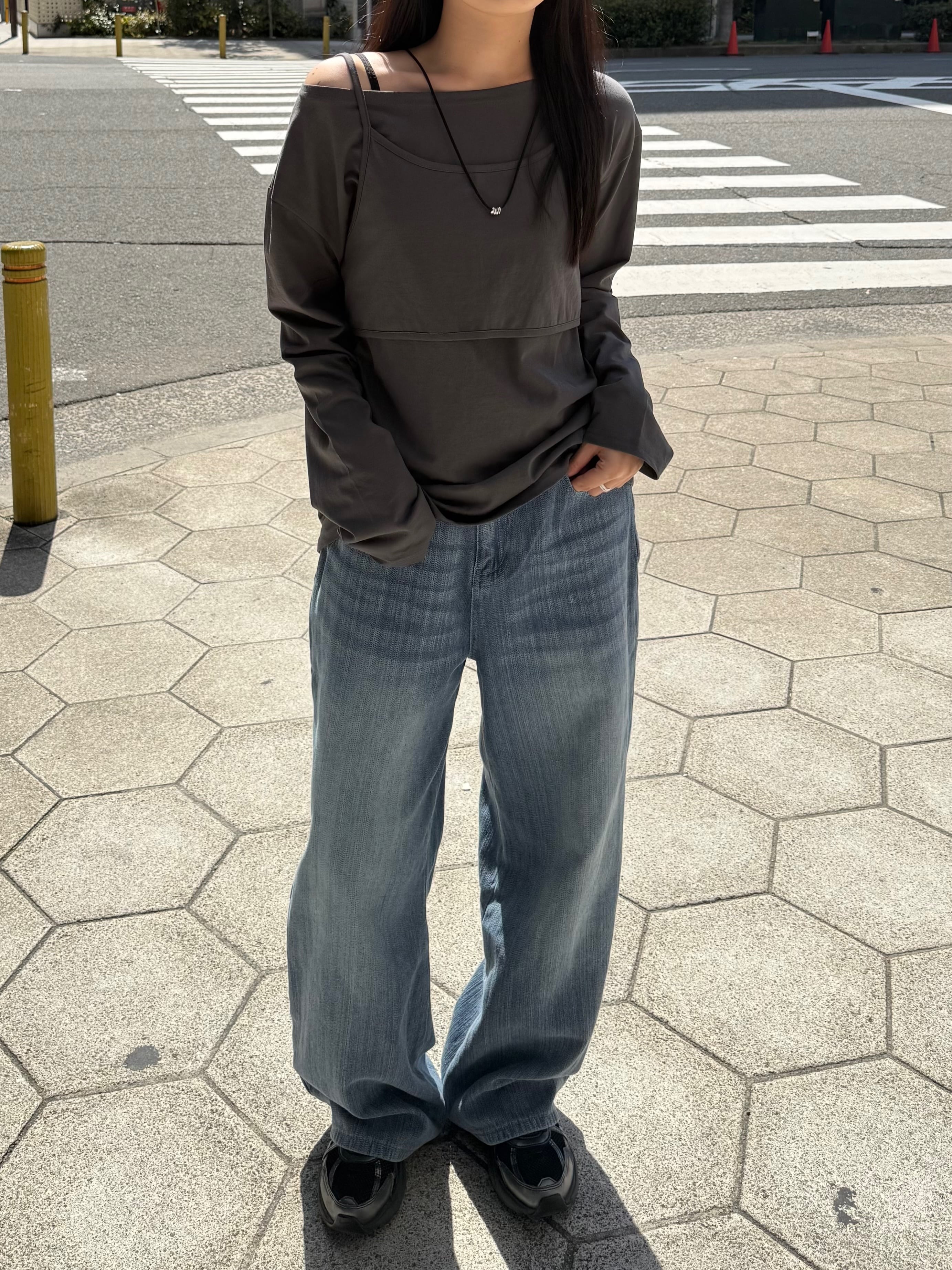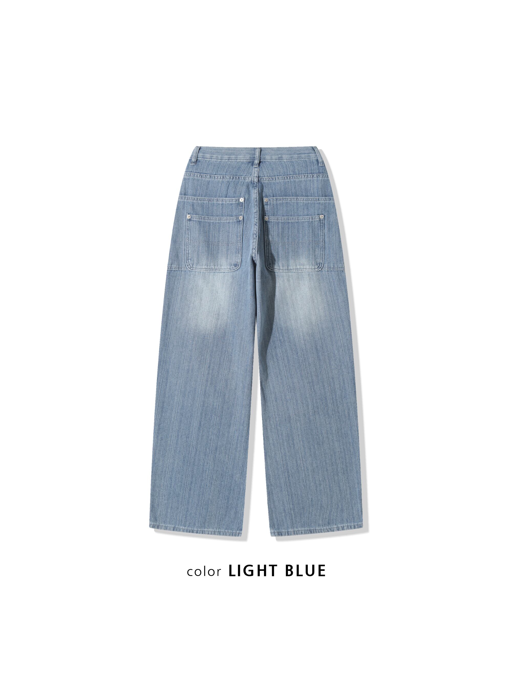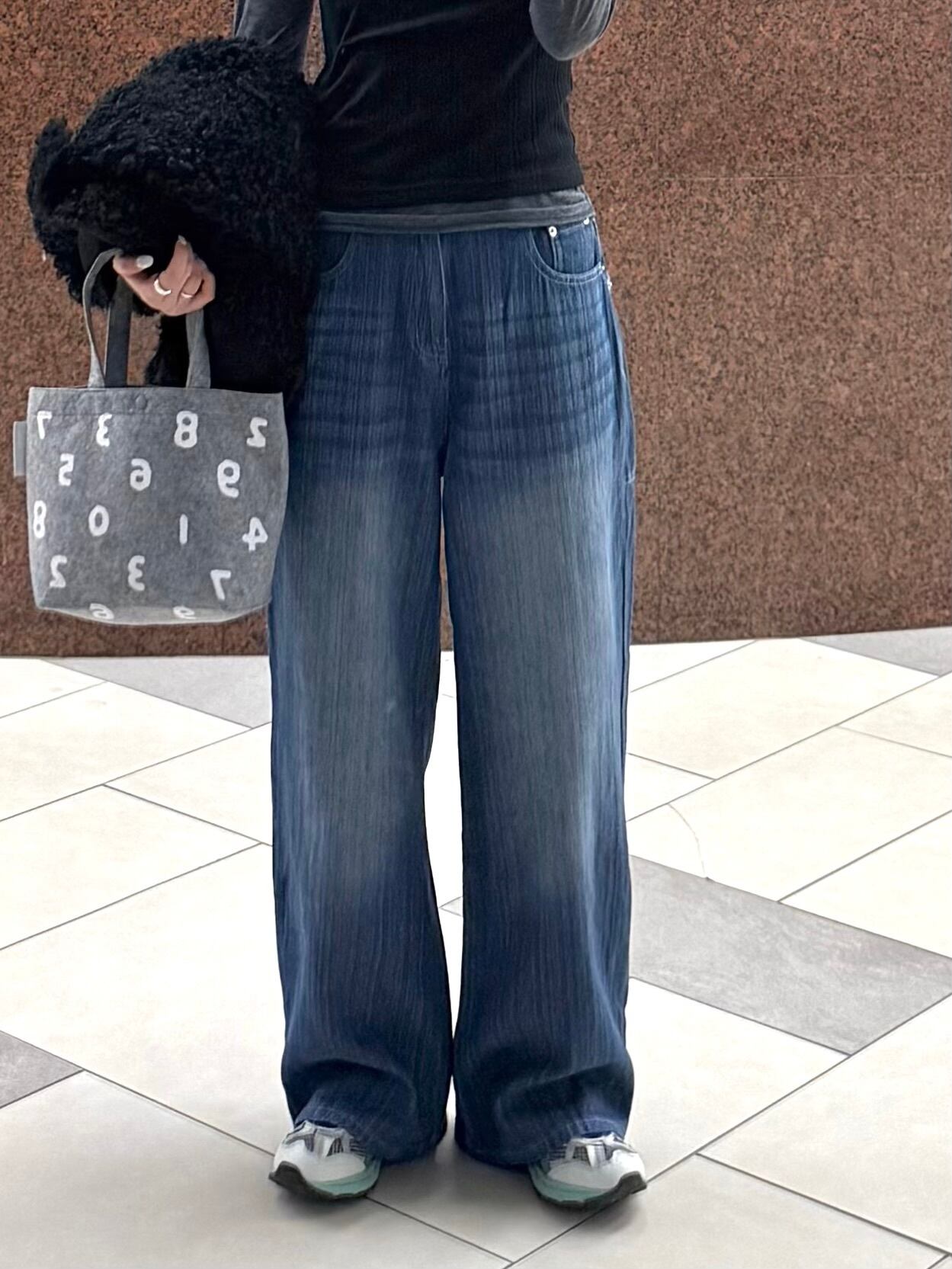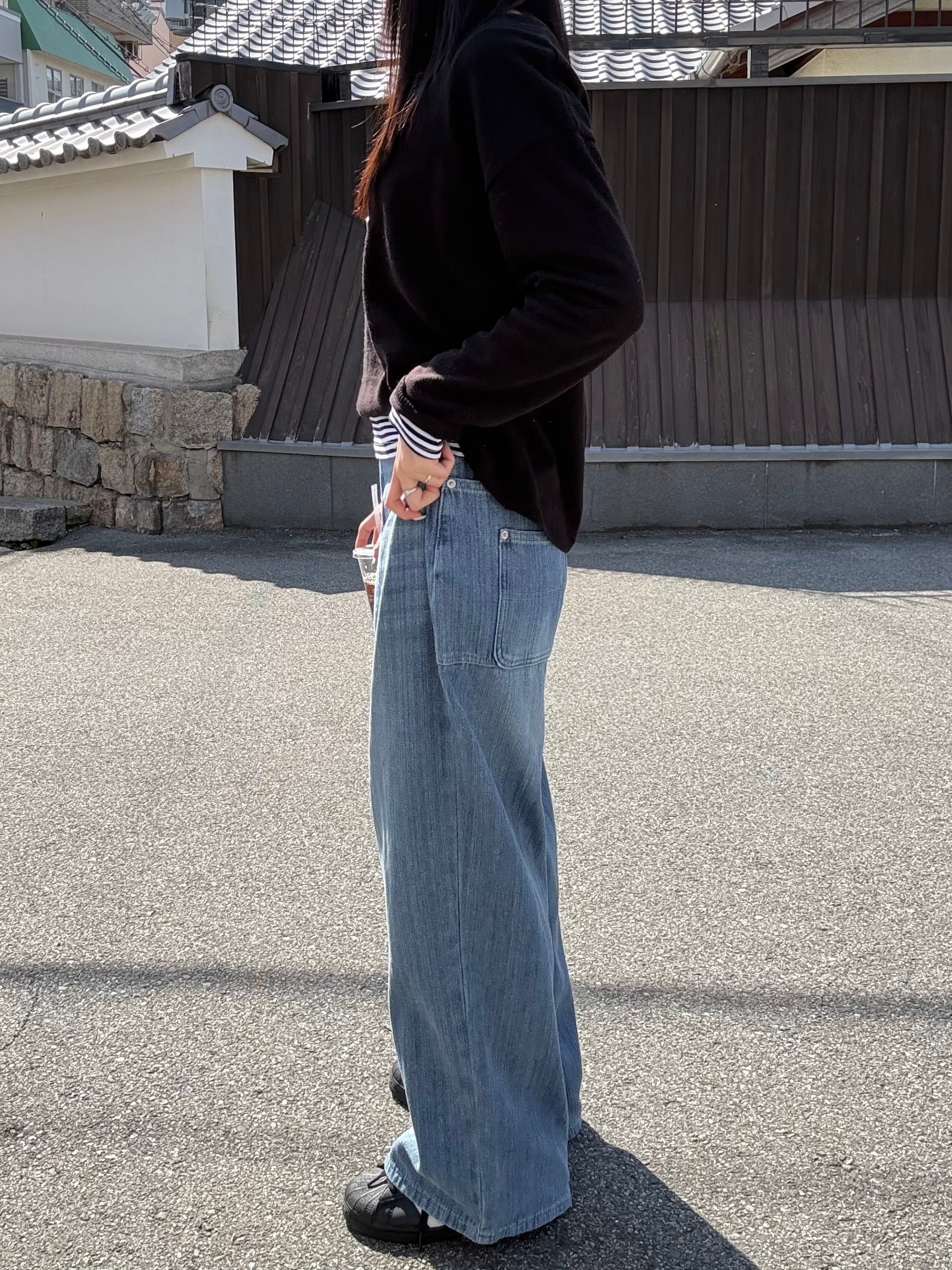 ダブルポケットが特徴の ワイドデニムパンツ。